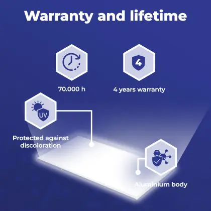 | Herstellername | Budgetlight LED Panel Ecowhite V4.0 64W Max7680lm 3CCT 600X1200 (panel height 34mm) | |