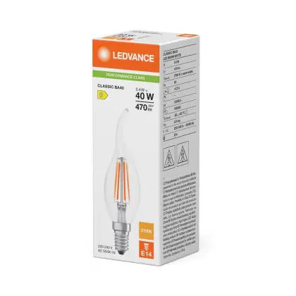 Ledvance Classic LED E14 Kerze Fadenlampe Klar 3.4W 470lm - 827 Extra Warmweiß | Ersatz Für 40W
