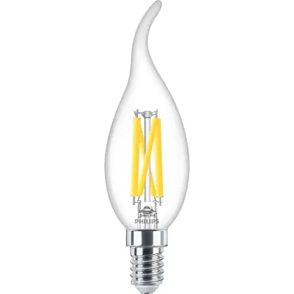 Philips MASTER LED E14 Gebogen-tip Kerze Fadenlampe Klar 3.4W 470lm - 922-927 Dim To Warm | Höchste Farbwiedergabe - Dimmbar - Ersatz Für 40W