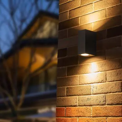 Vous cherchez un éclairage fonctionnel pour votre façade ? L'applique murale D'Lite de la gamme Vrebos éclaire vers le haut et vers le bas et est très facile à installer grâce au matériel qui est fourni.