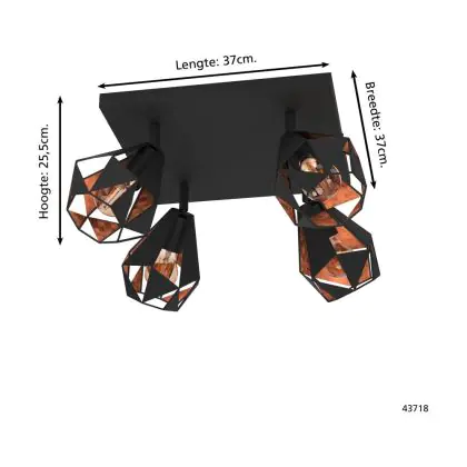 Eglo Plafonnier Carlton 7 Échantillon Noir Cuivre | IP20 - Convient pour 4x E27
