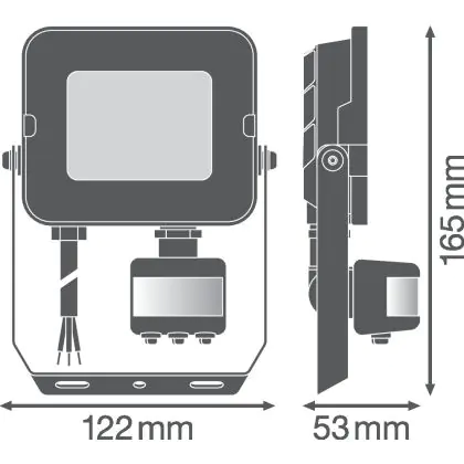 Description Ledvance Projecteur LED Compact Noir 20W 2000lm 100D - 840 | IP65 - Symétrique - Détecteur de mouvement et de lumière