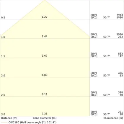 • Angle de diffusion: 100 °