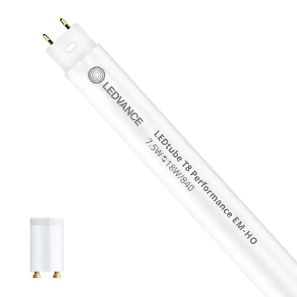 Ce tube LED Ledvance Tube LED T8 Performance (EM/Direct 230V) High Output 7.5W 1100lm - 840 | 60cm - Dimmable - Remplacement 18W est l’un des produits les plus éconergétiques en remplacement des tubes T8 classiques. Avec ce tube LED vous êtes donc assuré de sa qualité. Avec une puissance de seulement 7.5 W, ce tube LED a la même intensité lumineuse qu’un tube classique qui consomme 18 W.