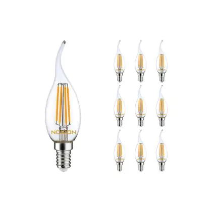 Description Lot 10x LED E14 Bent-tip Bougie Filament Claire 4.5W 470lm - 827 | Dimmable - Remplacement 40W