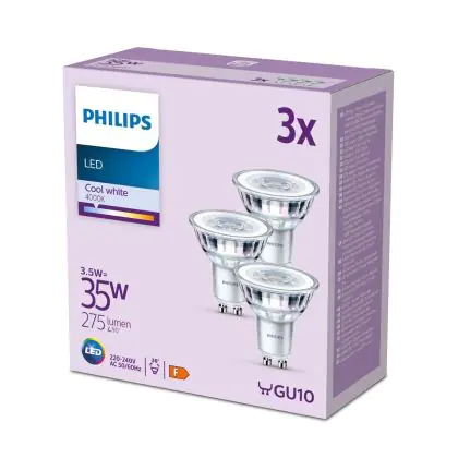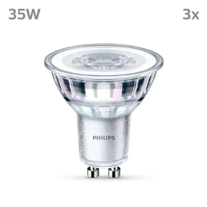 Cette ampoule Lot 3x Philips Spot LED GU10 PAR16 4W 275lm 36D - 840 est le produit de remplacement idéal pour votre ancienne ampoule avec un culot GU10. Grâce à la technologie LED intégrée, vous pourrez faire des économies d’énergie substantielles. Ce spot Lot 3x Philips Spot LED GU10 PAR16 4W 275lm 36D - 840 avec son efficacité lumineuse de lumen par watt, vous permettra de profiter d’un éclairage de qualité en toute circonstance.