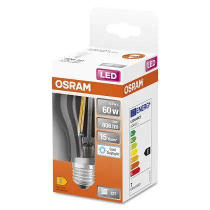 Cette ampoule Osram Classic LED E27 Poire Filament Claire 6.5W 806lm - 865 | Remplacement 60W avec son efficacité lumineuse de lumen par watt vous permettra de profiter d’un éclairage de qualité. Avec sa durée de vie de 15000 heures, vous n’aurez pas à vous soucier de son remplacement avant quelques années.