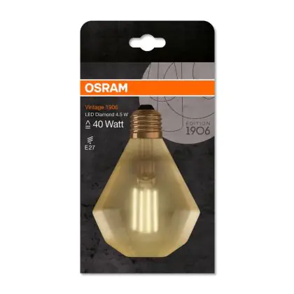 Cette ampoule Osram Vintage 1906 LED E27 Poire Filament Dorée 4.5W 420lm - 825 | Remplacement 40W avec son efficacité lumineuse de lumen par watt vous permettra de profiter d’un éclairage de qualité. Avec sa durée de vie de 15000 heures, vous n’aurez pas à vous soucier de son remplacement avant quelques années.