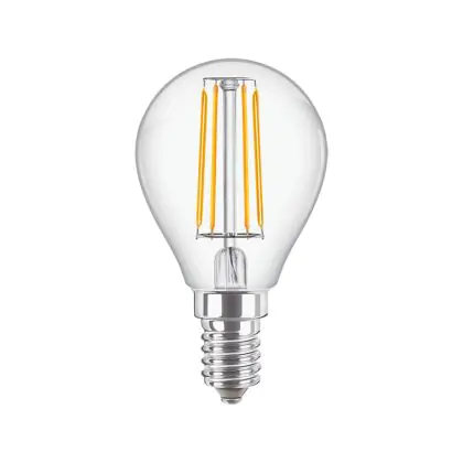 Description Philips Corepro LED Lustre E14 Boule Filament Claire 4.3W 470lm - 827 Blanc Très Chaud | Équivalent 40W