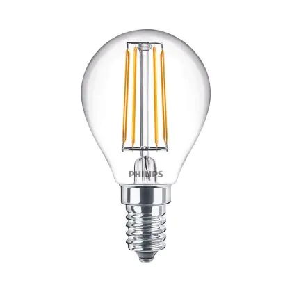 Cette ampoule Philips Master Value LED Lustre E14 Boule Filament Claire 3.4W 470lm - 927 Blanc Très Chaud | Meilleur rendu des couleurs - Dimmable - Équivalent 40W avec son efficacité lumineuse de lumen par watt vous permettra de profiter d’un éclairage de qualité. Avec sa durée de vie de 15000 heures, vous n’aurez pas à vous soucier de son remplacement avant quelques années.